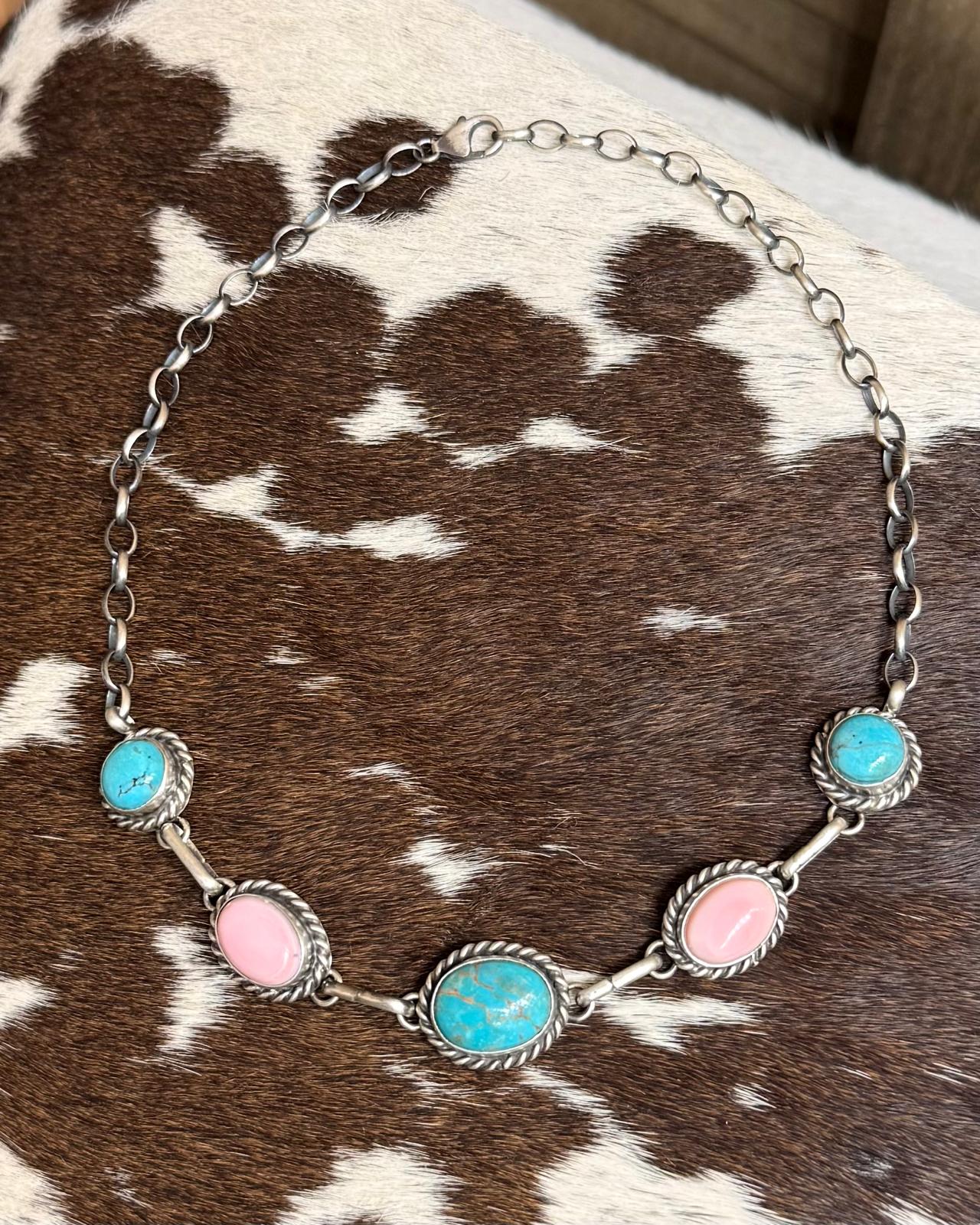 16" Pink Conch & Turquoise Choker *Native