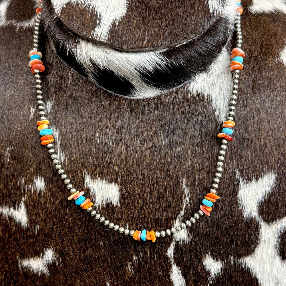 Spiny Turquoise Chip Pearl Necklace