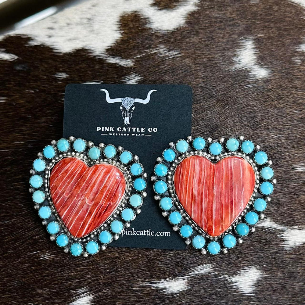Turquoise & Spiny Oyster Heart Earrings *Native