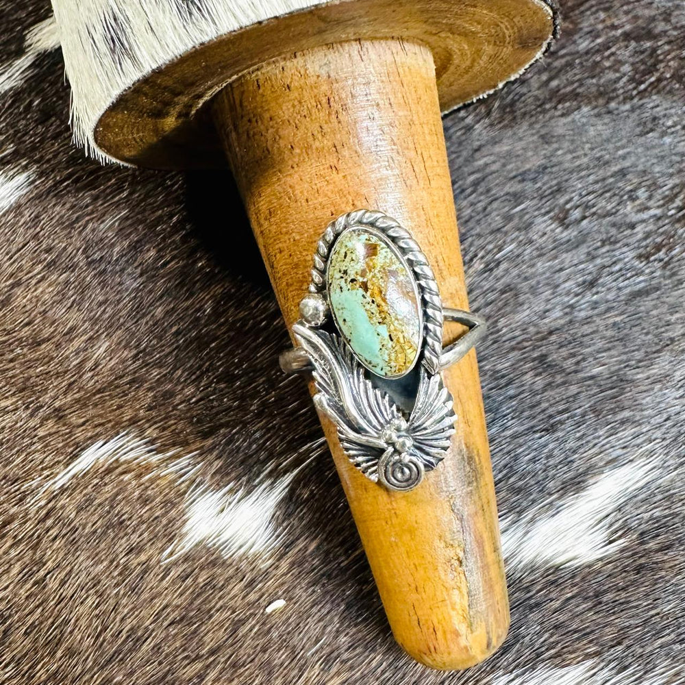 Turquoise Adjustable Oval Border Design Ring *Native