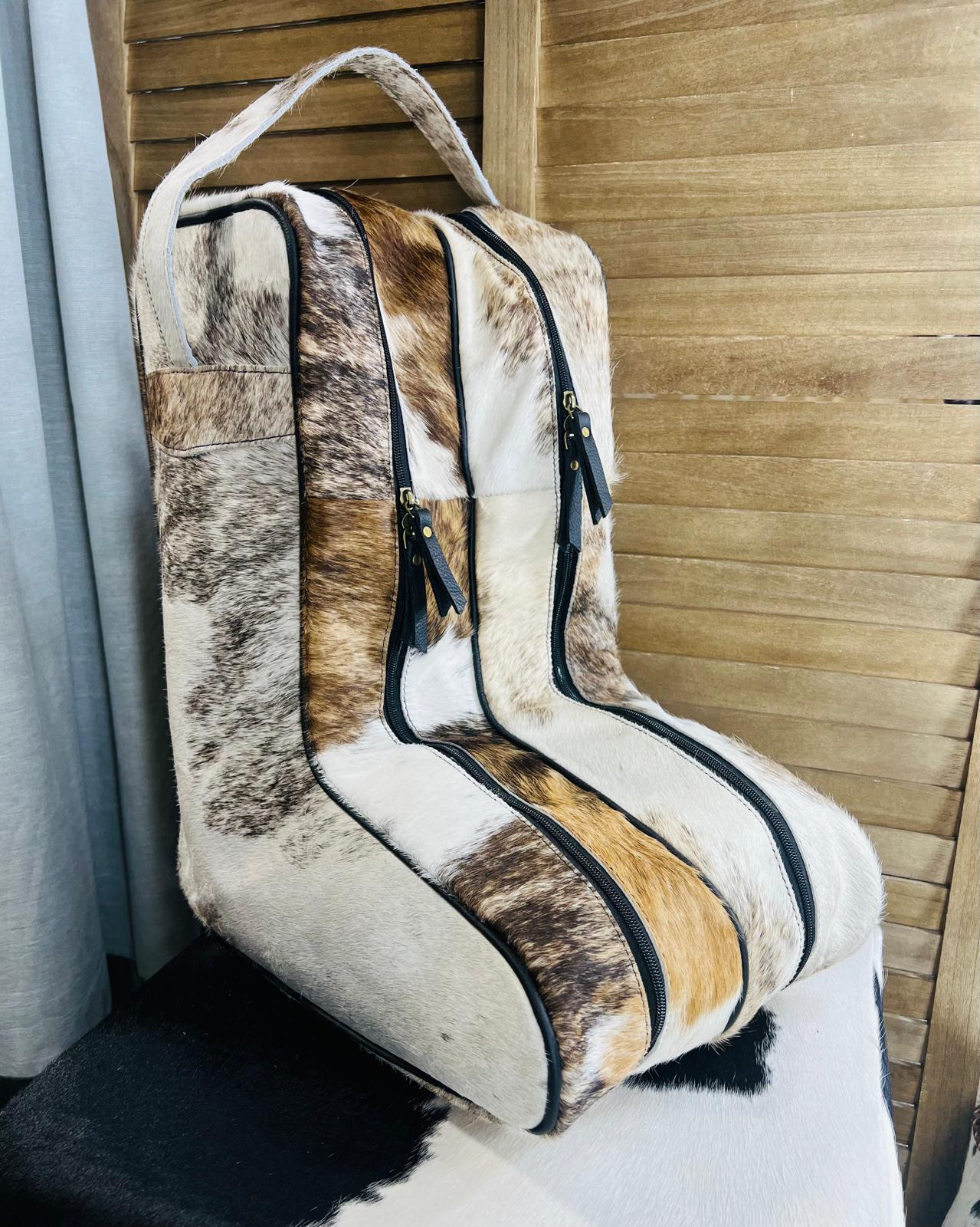 Brown/Creme Cow Hide Boot Bag